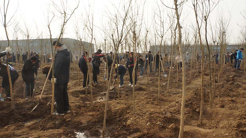全體參加植樹活動的員工準(zhǔn)時到位,在結(jié)束了短暫的人員組隊,劃分區(qū)域和領(lǐng)取工具等準(zhǔn)備工作后,迅速的投入到植樹活動當(dāng)中。各小組成員分工明確,積極踴躍。很多隊伍在組長的帶領(lǐng)下,領(lǐng)樹苗、放樹苗、填土、培土、澆水相互配合,干得熱火朝天。許多小組高效率高質(zhì)量的完成本隊植樹任務(wù)后,迅速投入到其他隊伍中,互幫互助。在全體員工有組織有紀(jì)律的高效協(xié)作的前提下,在不到兩個半小時的時間內(nèi),共計完成1800棵樹苗的栽種工作,綠化面積達(dá)12000多平方米。此次植樹活動,進(jìn)一步改善了控感廠區(qū)的生產(chǎn)環(huán)境,把原本空曠的廠區(qū)西南角的一片空地裝點(diǎn)得煥然一新!