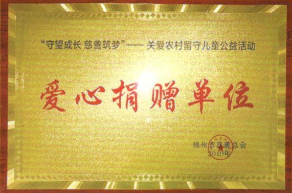 在“守望成長、慈善筑夢”關(guān)愛農(nóng)村留守兒童公益活動中,公司被錦州市慈善總會授予“愛心捐贈單位”榮譽(yù)稱號。