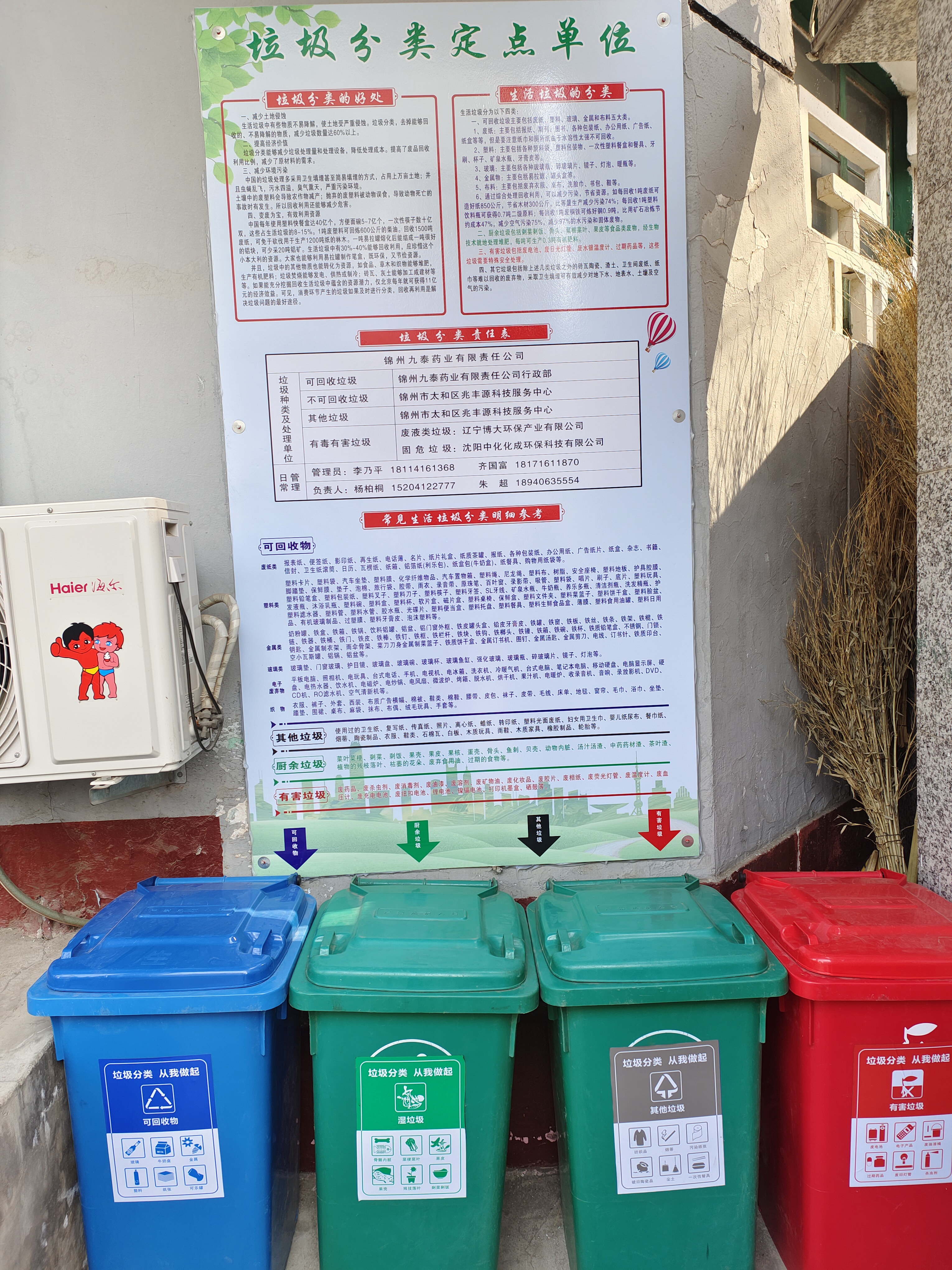 除以上規(guī)章制度的建立外,行政部按照太和區(qū)政府的要求,在與有關(guān)部門及單位的共同配合下,把九泰藥業(yè)作為“垃圾分類定點單位”的相關(guān)工作認真迅速的落實了下去,并在第一時間對各個部門進行了垃圾分類相關(guān)知識的普及。